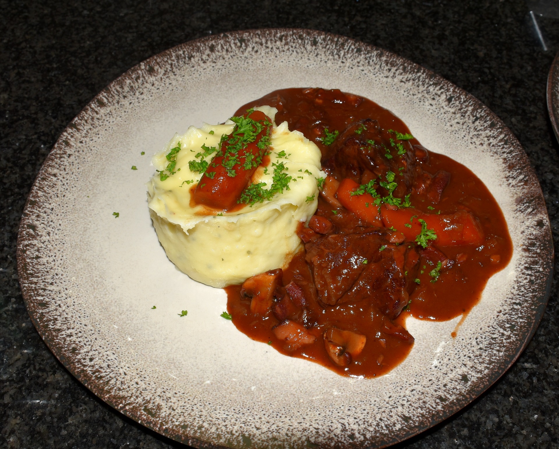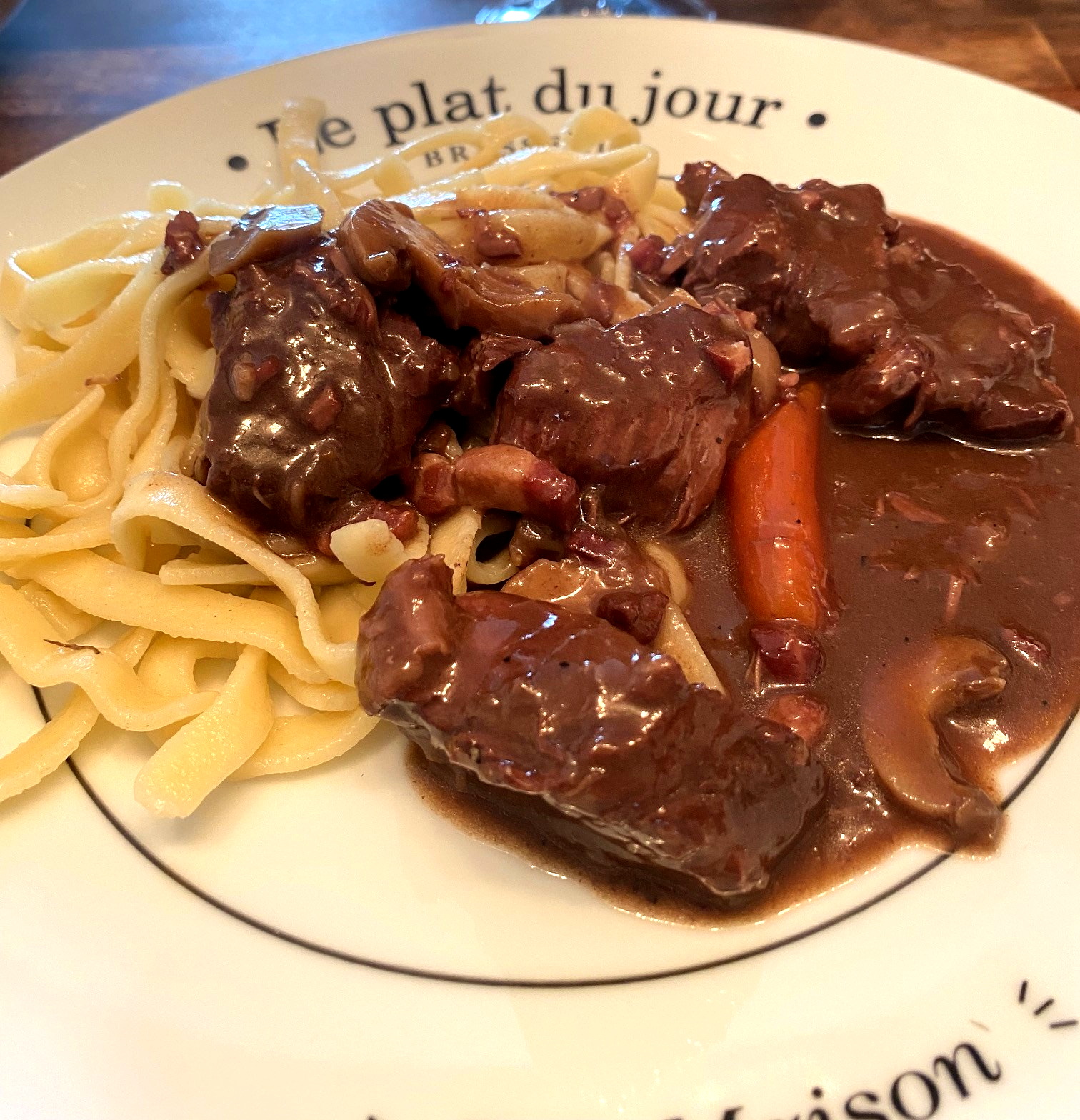 Le bœuf bourguignon : une merveille de la cuisine française qui séduit par ses saveurs riches et réconfortantes. Ce plat emblématique, préparé avec soin et patience, révèle tout son potentiel après une cuisson lente de quatre heures. Cette méthode permet aux morceaux de bœuf de s'attendrir délicieusement tout en absorbant les arômes profonds du vin rouge, des légumes et des herbes aromatiques. C'est une expérience gustative qui transporte vos papilles directement au cœur de la Bourgogne.