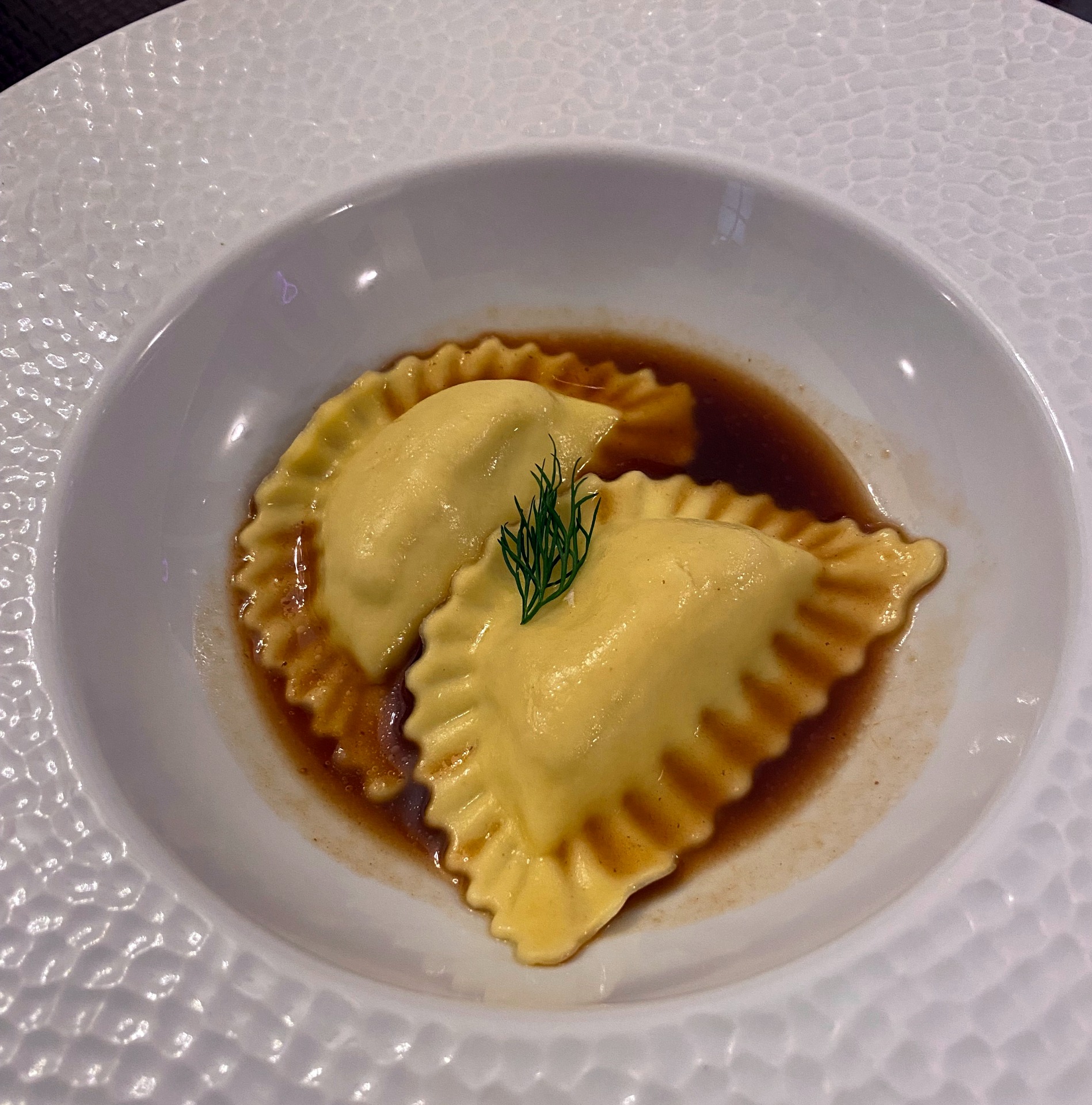 ravioles farcies à la burrata et truffe blanche et son jus de viande