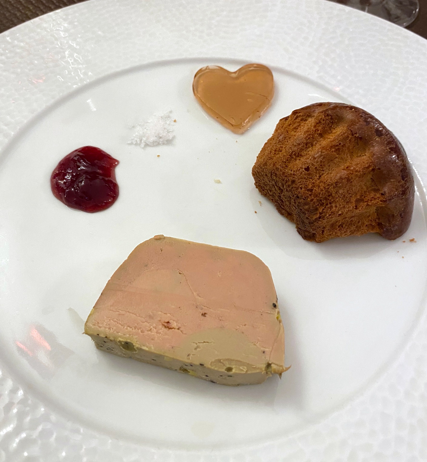 foie gras au poivre, chutney pêche de vigne, briochette, gelée au vin chaud