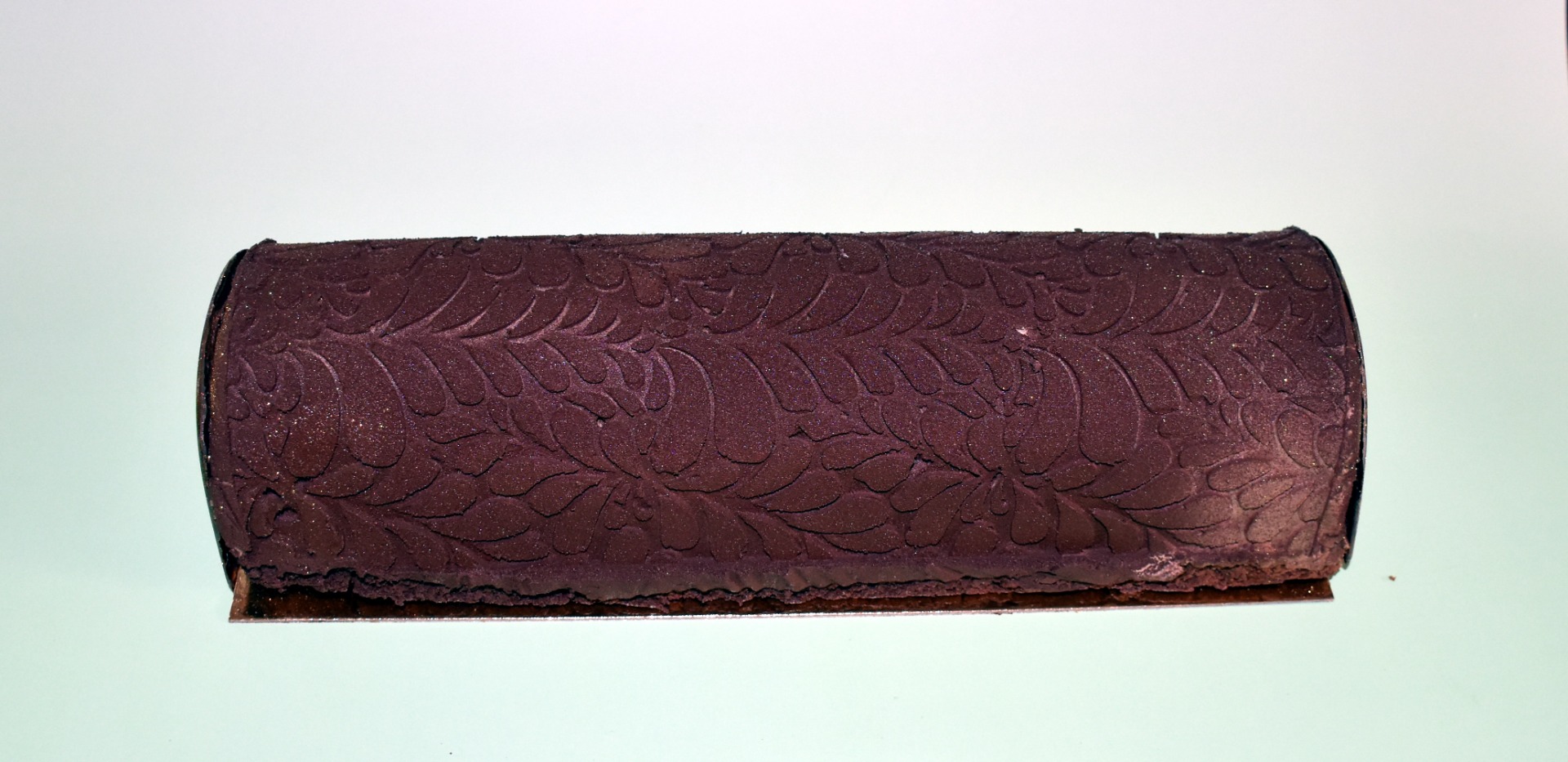 Démoulez la bûcge et bombez la avec un spray velours cacao (alors qu'elle est encore congelée) et décorez selon votre goût.