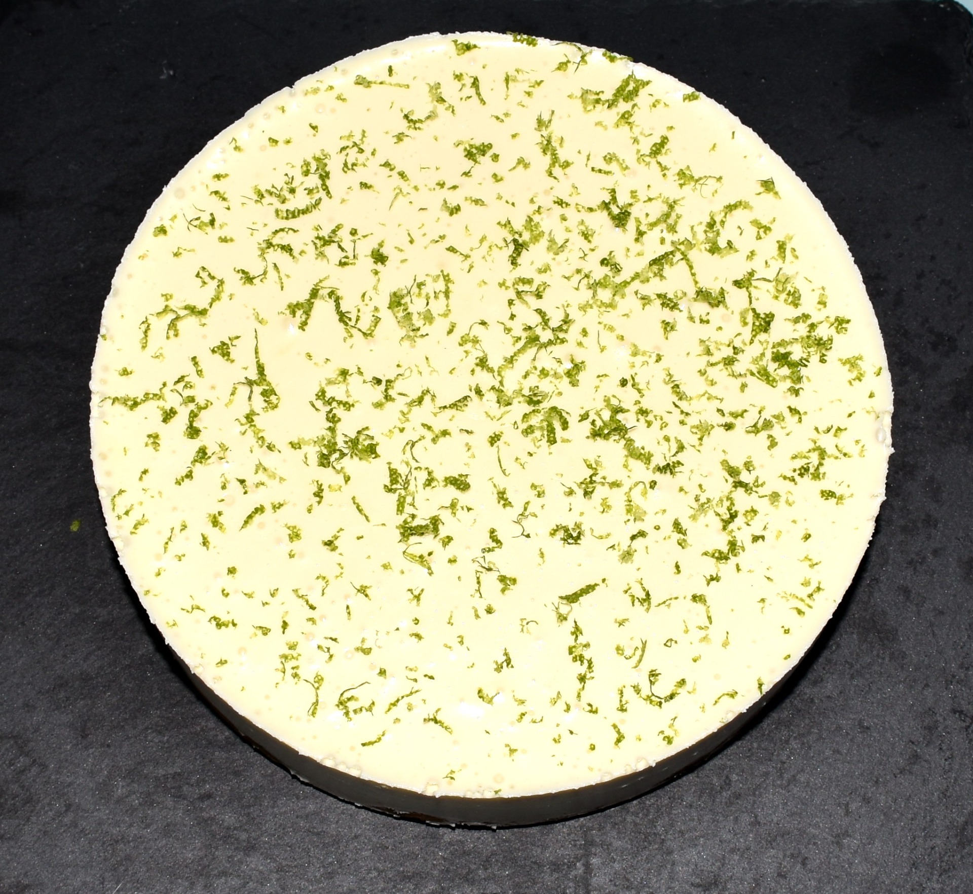 2 citrons verts - 400 grammes de fromage frais (St Moret) 60 grammes de beurre demi sel - 15 Cl de crème liquide - 250 de chocolat blanc - 130 grammes de palets breton au beurre - 3 feuilles de gélatine (7 grammes)