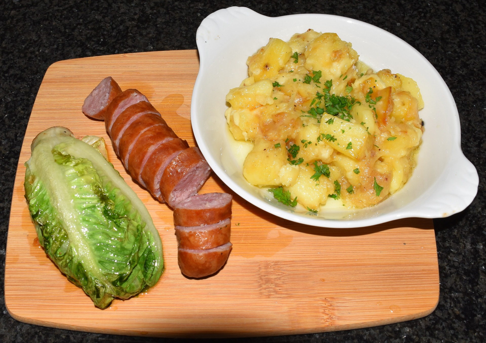 Pour ma part, j'ai choisi une sucrine braisée et une saucisse de diot. Bien que ces ingrédients ne proviennent pas de la même région, leurs saveurs s'harmonisent parfaitement.