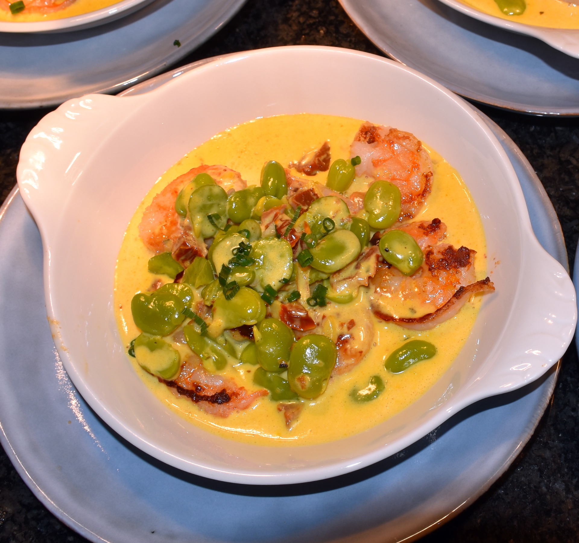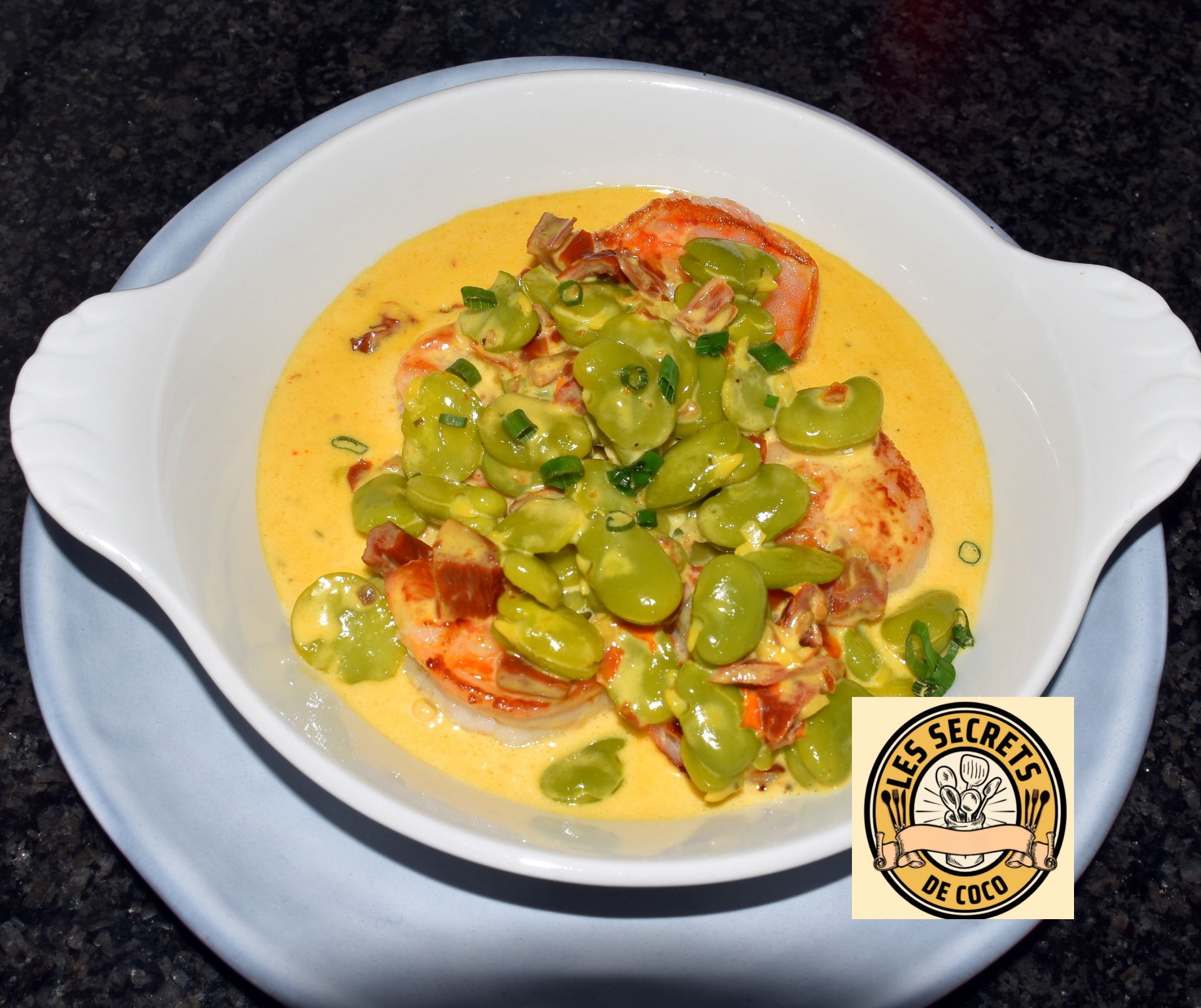 Le navarin de la mer est une délicieuse symphonie de saveurs qui évoque les embruns marins et les plaisirs culinaires. Ce plat, qui met en valeur la finesse des fruits de mer, se distingue par la douceur des noix de Saint-Jacques et la tendresse des crevettes. La richesse de la crème liquide s'harmonise parfaitement avec l'onctuosité des fèves, tandis que les tomates confites ajoutent une touche sucrée et savoureuse. L'ail et le safran rehaussent subtilement le mélange, offrant une profondeur aromatique qui se marie à merveille avec la légère chaleur du Tabasco. Ce navarin vous transporte sur les côtes ensoleillées, évoquant une expérience gustative inoubliable.