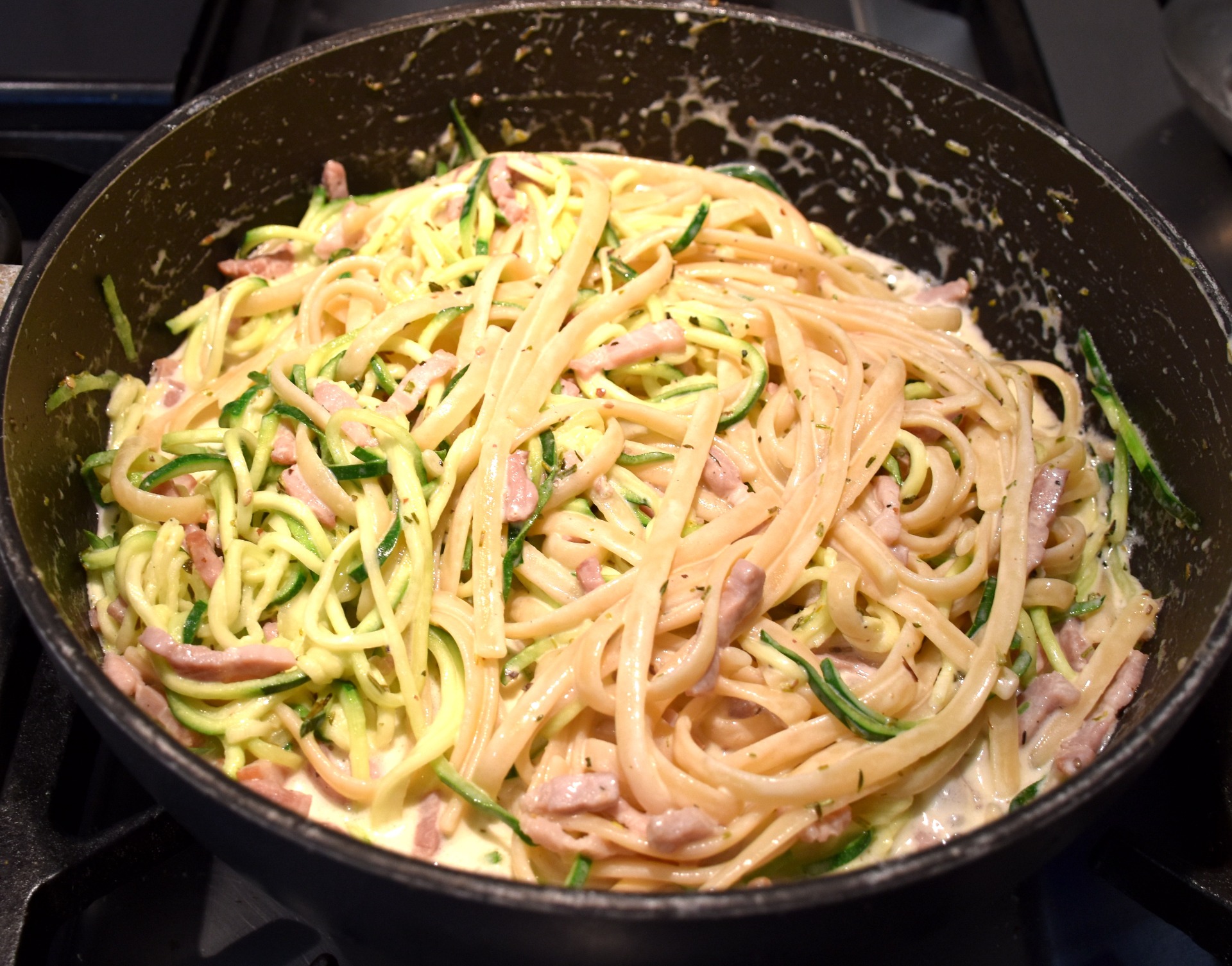 Découvrez comment préparer un plat savoureux de pâtes à la crème avec des courgettes et des lardons. Ce plat est idéal pour un dîner rapide et délicieux en famille ou entre amis.