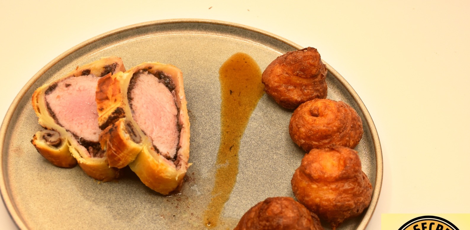 à la sortie du four laisser reposer la viande quelques minutes, et tranchez la avec un couteau électrique (pour ne pas casser le feuilletage)