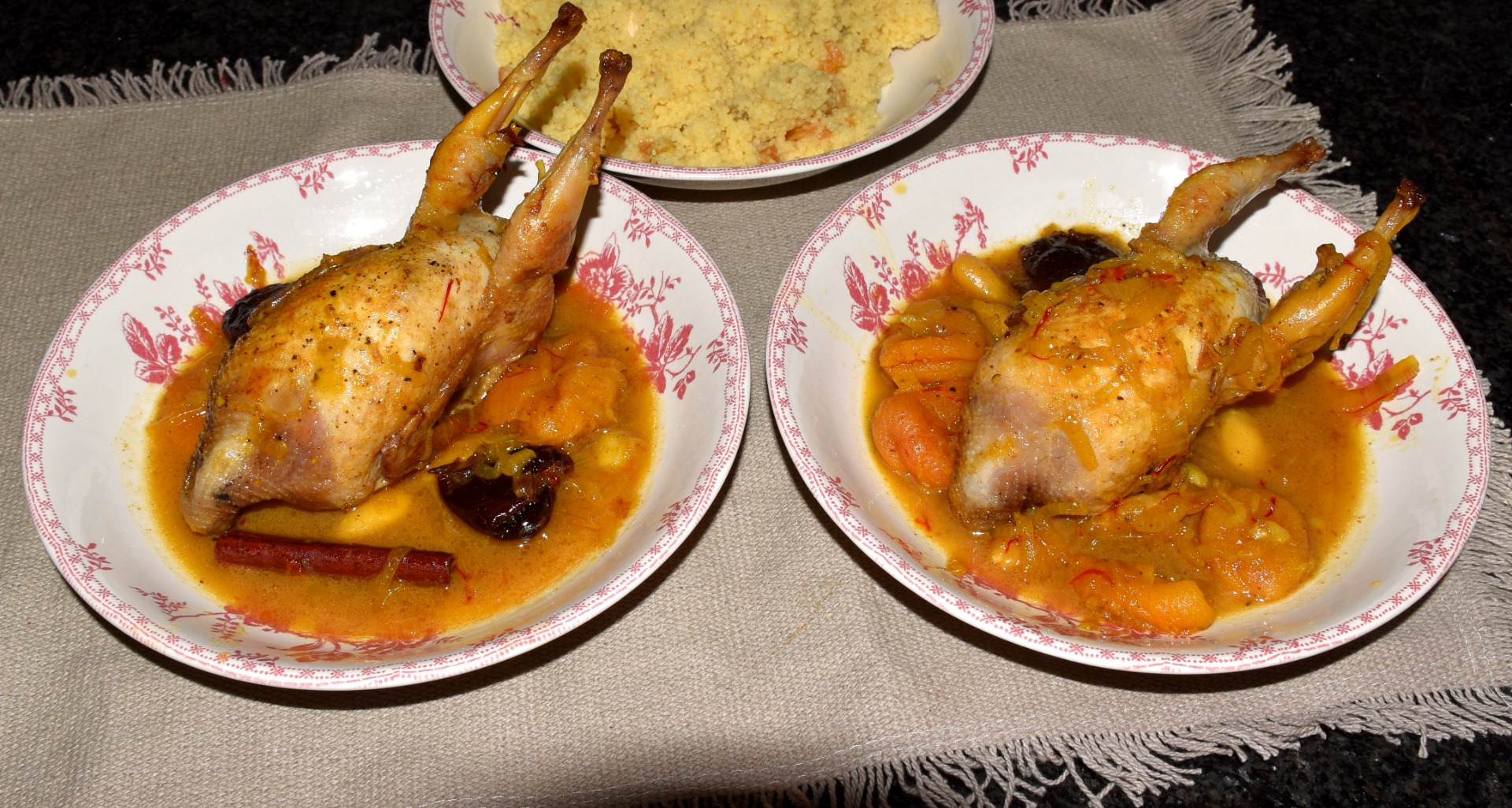 Tajine de noël aux cailles fruits secs et épices douces