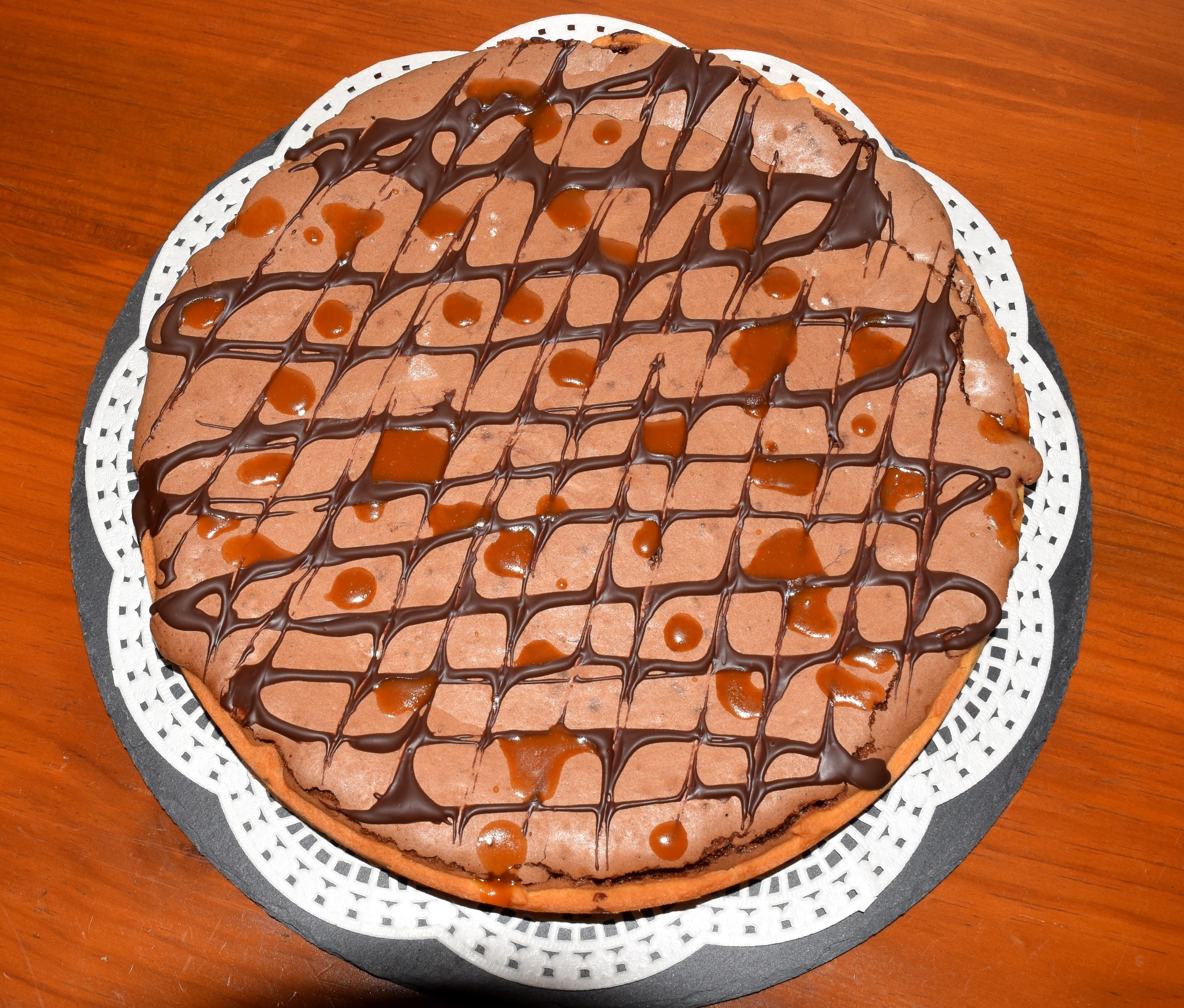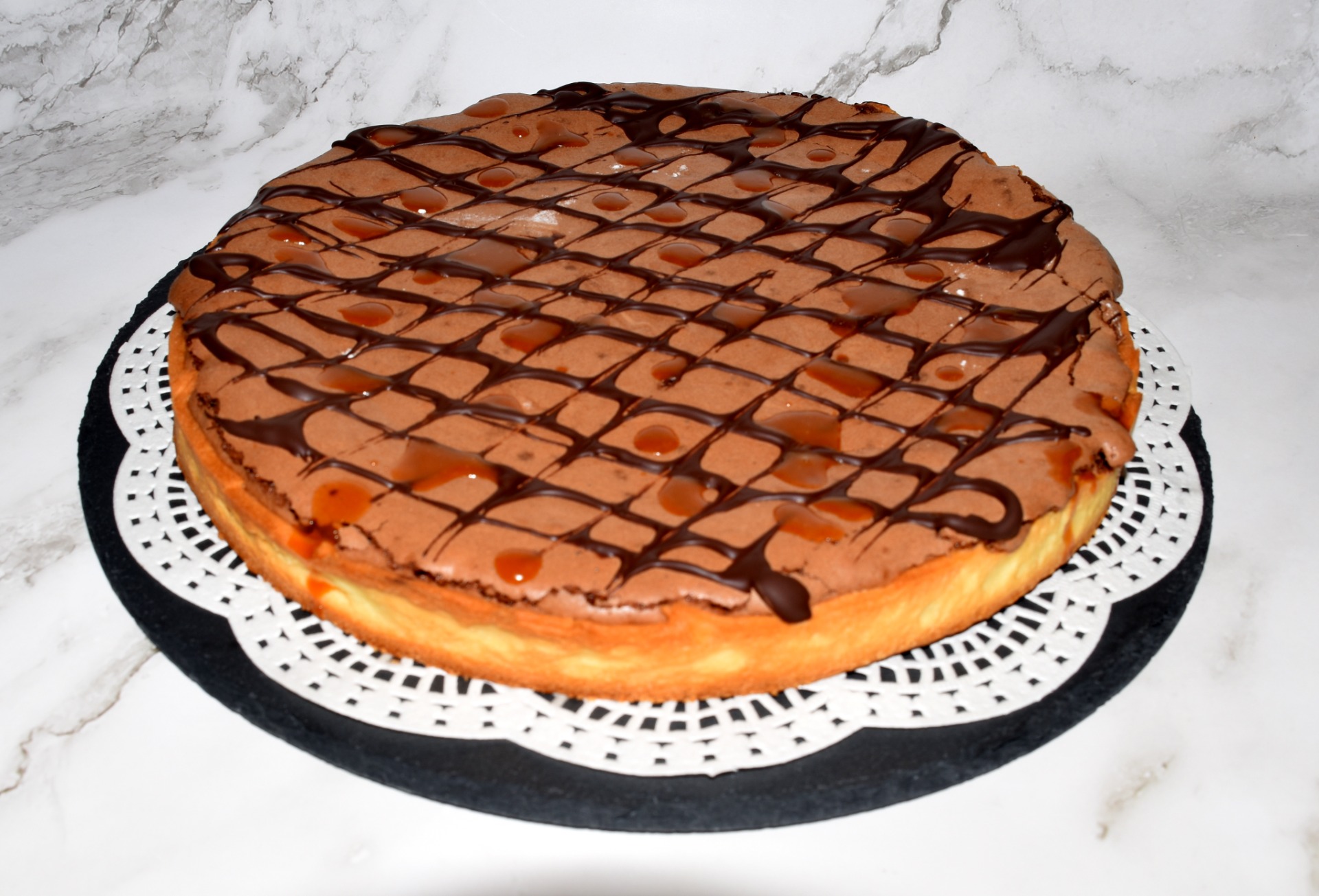 Versez cet appareil au chocolat sur le fond de tarte précuit, puis enfournez la tarte au chocolat pendant environ 15 minutes, jusqu’à ce que la surface soit prise tout en conservant un cœur légèrement fondant.