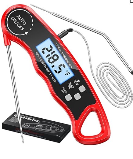 Si je devais vous recommander un ustensile à acquérir absolument, ce serait ce thermomètre qui vous permettra de toujours maîtriser les températures de vos crèmes, sirops, viandes et bien plus encore. J'ai choisi ce modèle en raison de ses deux sondes, ce qui vous permet de l'utiliser pour vos préparations au four et même au Kamado, pour ceux et celles qui ont la chance d'en posséder un.