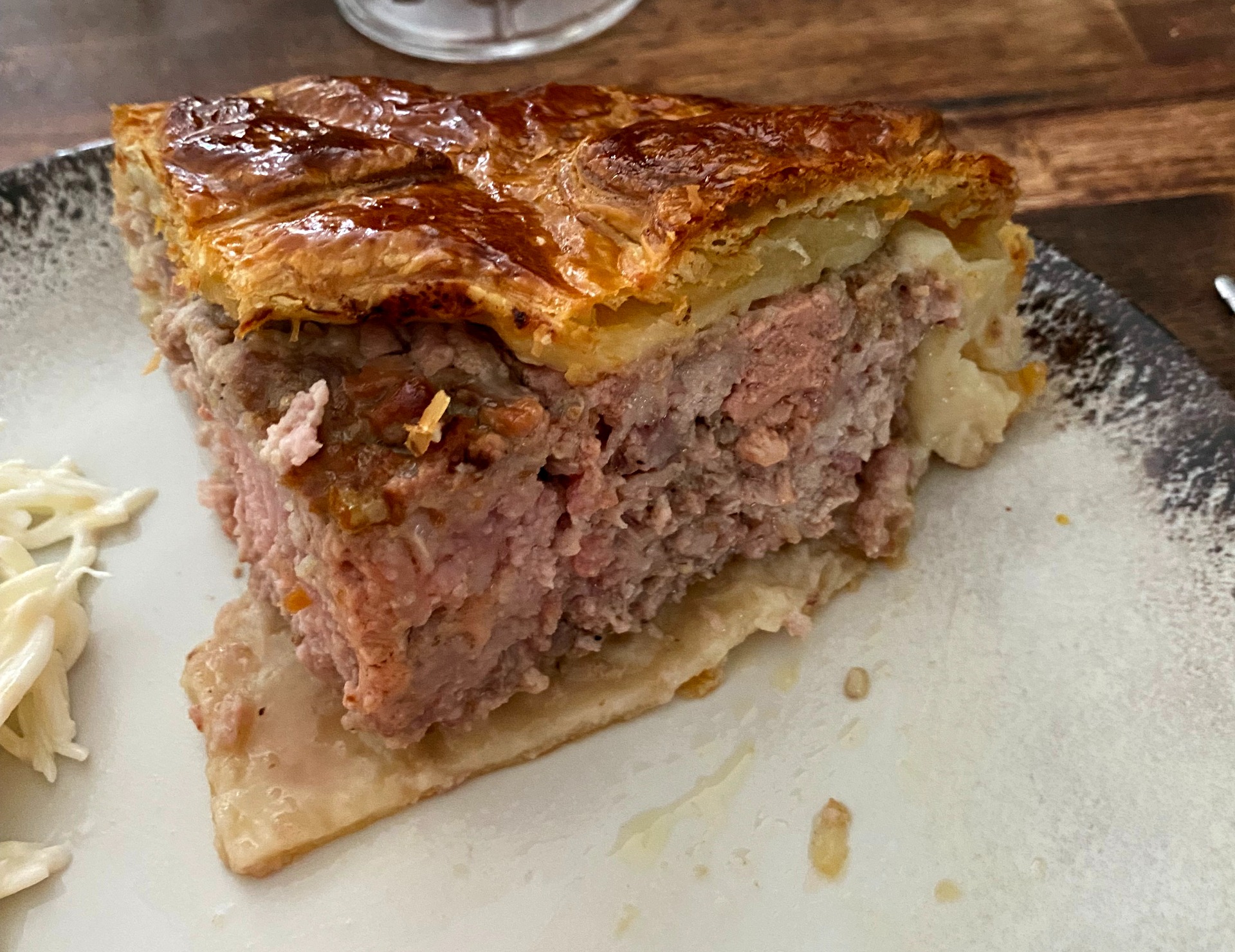 Savourez votre tourte au foie gras accompagnée d'une salade verte et d'un verre de vin pour un repas raffiné !