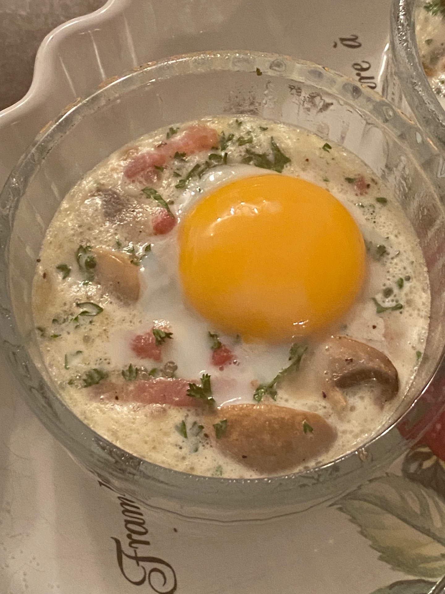 Oeuf cocotte lardons champignons