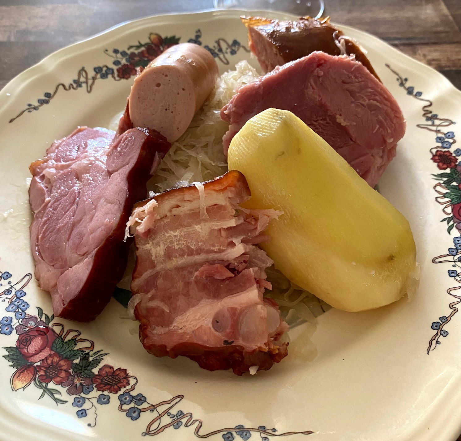 La choucroute, un plat emblématique de la cuisine alsacienne, trouve ses origines dans la fermentation de chou. Importée d'Europe centrale, elle est devenue une spécialité régionale en Alsace, où l'on la prépare traditionnellement avec des saucisses, de la charcuterie et des pommes de terre.