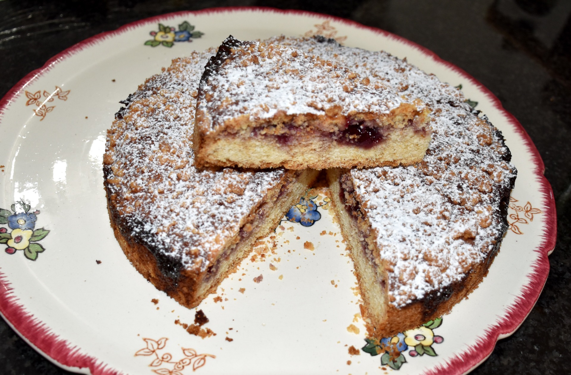 La sbriciolata est un gâteau italien préparé avec une pâte de type crumble et garni de confiture. Pour cette recette, j'ai choisi de mettre en avant la gelée d'isabelle, mais vous pouvez utiliser n'importe quelle confiture ou même de la pâte à tartiner.
